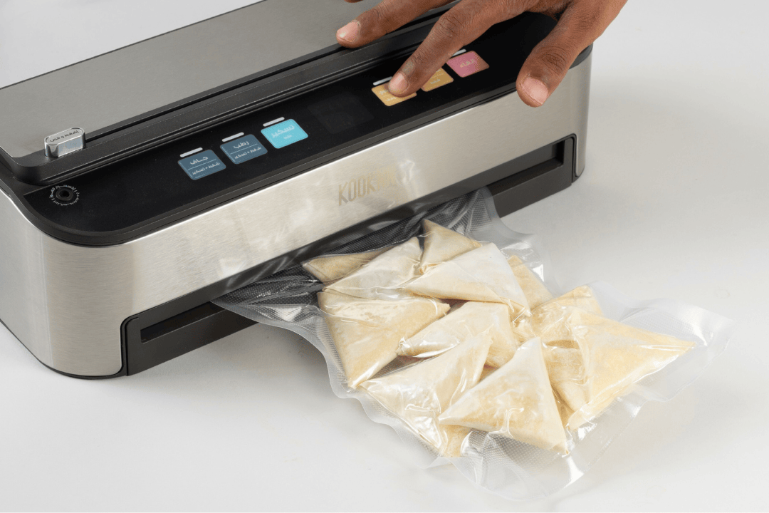 جهاز الشفط و التسكير يشفط الهوا ويسكّر الأكل عدل، يخليه يعيش أطول ويخلّي التخزين أسهل وأرتب.